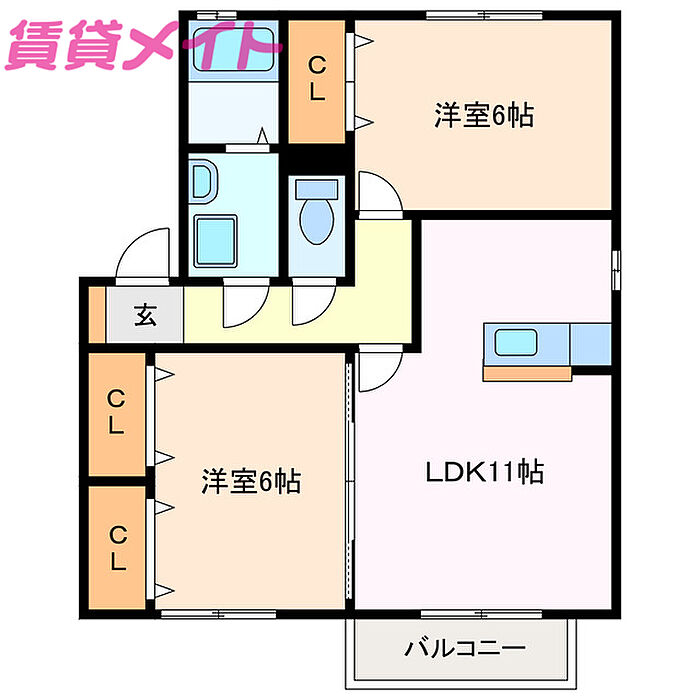 クレールフジ 2LDK/1階