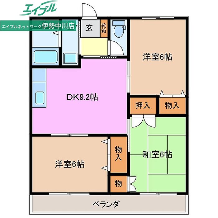 プロミネント伊勢中川 3DK/1階