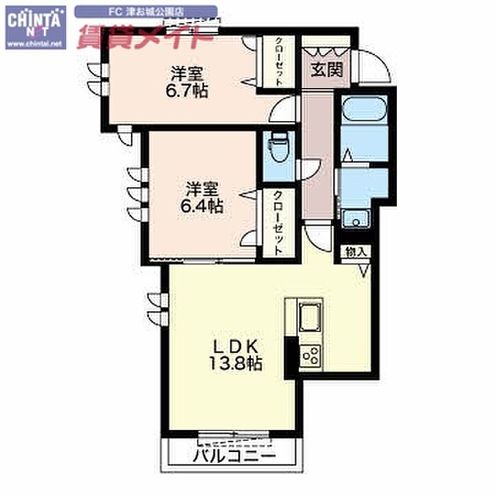 メゾン ド プリモ津新町 2LDK/2階