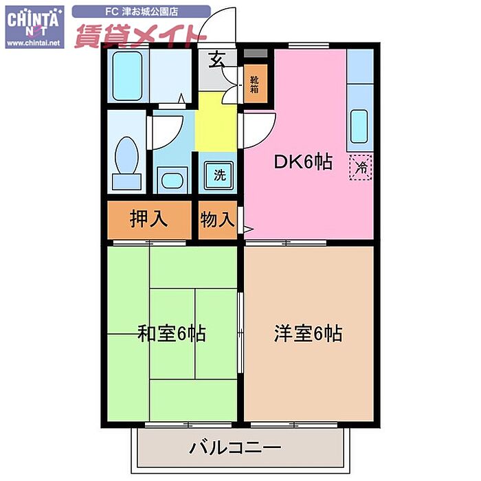 South Court Twin B棟 2DK/2階