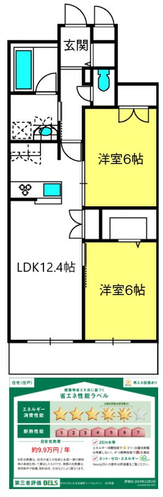 物件は本情報によらず現況が優先されます。※保険料はプランによって異なります。解約予告40日前。駐輪は各世帯2台まで。退去時専用部分清掃費借主負担。省エネルギー性能表示(BELS)におけるZEH−Mの評価取得物件(2024年12月2日に認証取得)。太陽光発電の電力を使用でき、電気代も節約。使用しなかった太陽光発電電力は、売電できるので売電収入も見込めます。電気はへーベル電気。