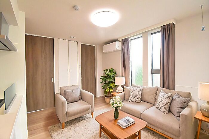 保険料はプランによって異なります。解約予告40日前。駐輪は各世帯1台まで。省エネルギー性能表示(BELS)におけるZEH−Mの評価取得物件(2023年10月30日に認証取得)/エネルギー消費量住棟:42%削減、203号室:55%削減 。太陽光発電の電力を使用でき、電気代も節約。使用しなかった太陽光発電電力は、売電できるので売電収入も見込めます。CG画像の為実際は家具・家電の設置無し。
