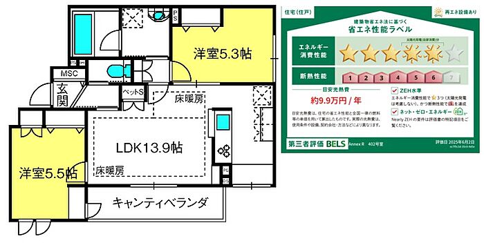 物件は本情報によらず現況が優先されます。保険料はプランによって異なります。解約予告40日前。退去時専用部分清掃費借主負担。太陽光発電の電力を使用でき、電気代も節約。使用しなかった太陽光発電電力は、売電できるので売電収入も見込めます。省エネルギー性能表示(BELS)におけるZEH−Mの評価取得物件(2025年6月2日に認証取得)。ペット共生へーベルメゾン。小型犬・中型犬・猫・多頭飼いご相談ください。