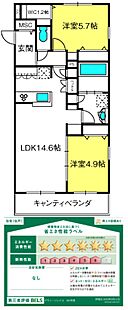 物件は本情報によらず現況が優先されます。※保険料はプランによって異なります。退去時専用部分清掃費借主負担。解約予告40日前。駐車場敷金+1ヶ月。ECOレジ物件特殊対応。省エネルギー性能表示(BELS)におけるZEH−Mの評価取得物件(2025年9月11日に認証取得)子育て世帯限定物件※子育て世帯=賃貸借契約日が属する年度の4月1日時点で小学生以下の子供を養育している世帯。出産前は不可
