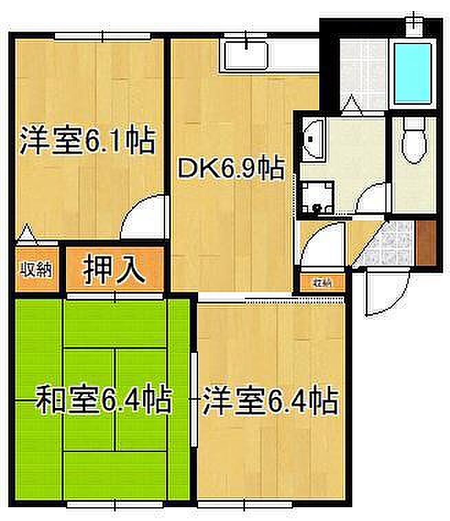 チェリーヒルズD・E・F 3DK/1階