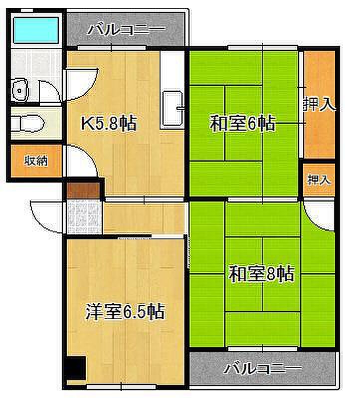 駐車場1台可。追い炊き機能、浴室に窓があり、換気できます。2面バルコニーです。キッチン横にバルコニーがあるので、便利です。収納もあるので、寝具もしまえます。
