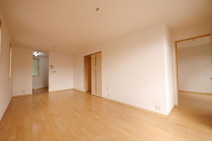 15帖超の広々リビング。ウォークインクローゼットあり。角部屋で窓が多く換気もしやすいです。