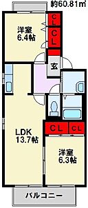 ヴィラコンフォートII B棟 202 2LDK/2階