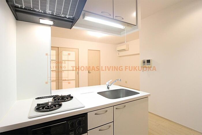 建物隣にはスーパー、レンタルショップ、3分圏内にはコンビニがあり、お車無しでも快適な生活環境です。2口コンロ・グリル付のキッチンで料理好きの奥様にもご満足頂けます。リビングには冷暖房も備わっています。