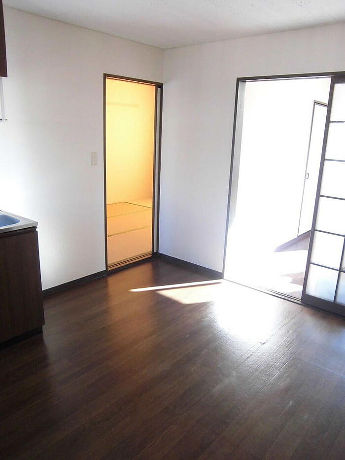 ガスコンロ2口設置可・収納2ヶ所。※1年未満の解約の場合、違約金として賃料等1ヶ月分をお支払い頂きます。