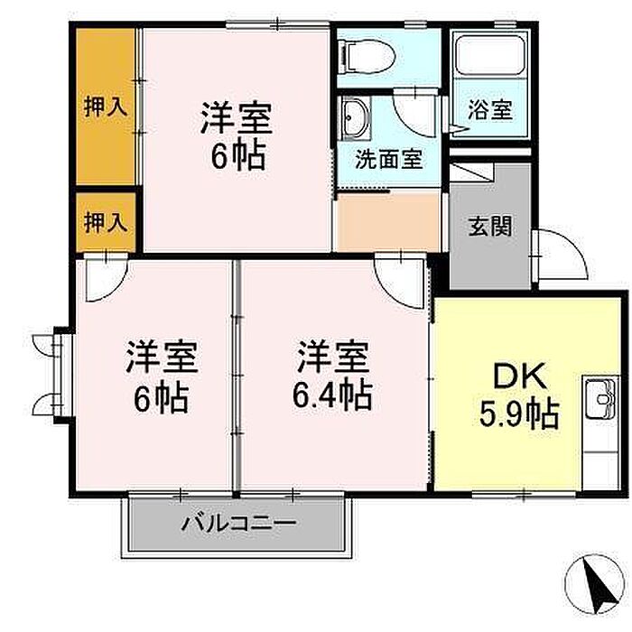 ボヌール羽屋D 201 3DK/2階