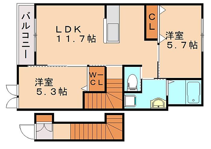 飯塚市秋松 アパート 2LDK/2階
