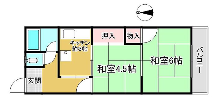 南向きで日当たりのいい2Kタイプ