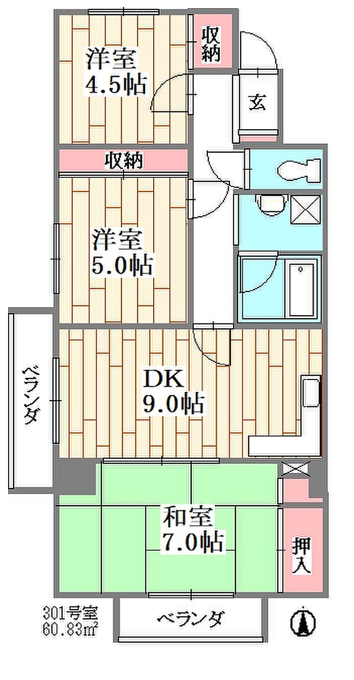 シャトルブラウンB 301 3DK/3階