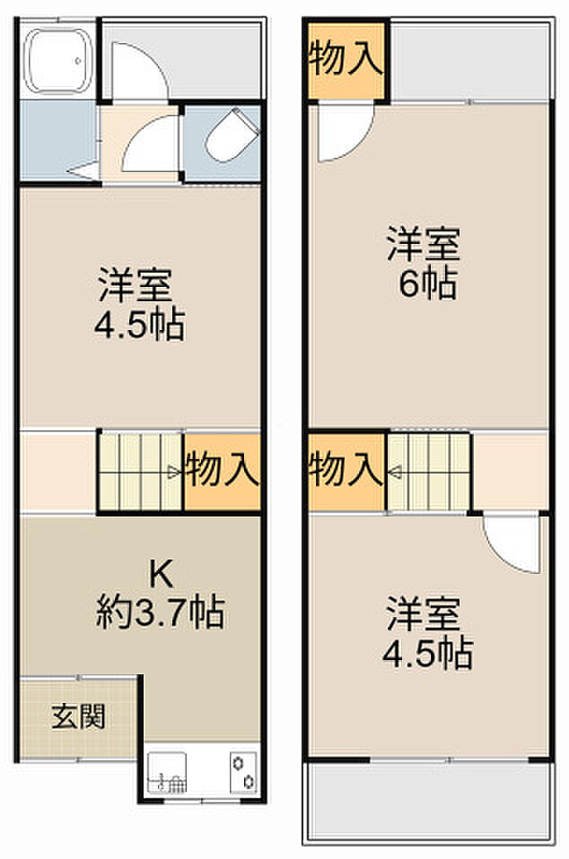 寝屋川市池田2丁目 テラスハウス 3K/1階