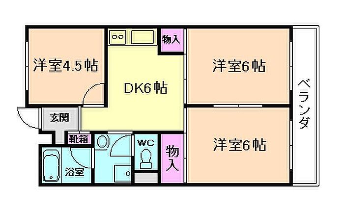 シャトー箕面 3DK/6階