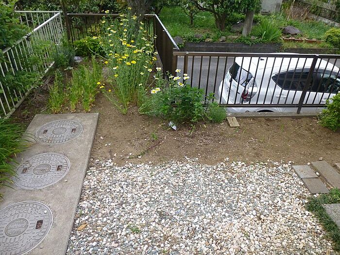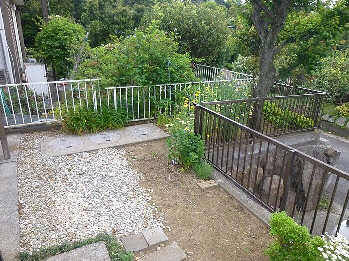 駐車場1台無料、専用庭付き。1階と2階にトイレあり。ペットは室外飼育のみ相談可。