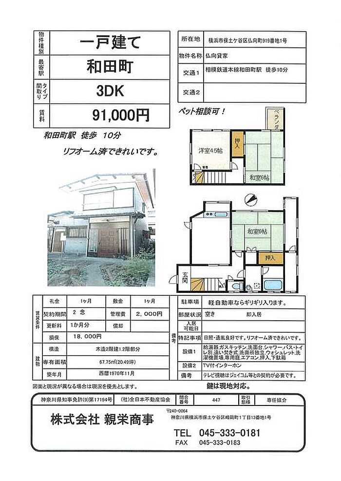 - 相鉄本線 「 和田町駅 」 徒歩10分