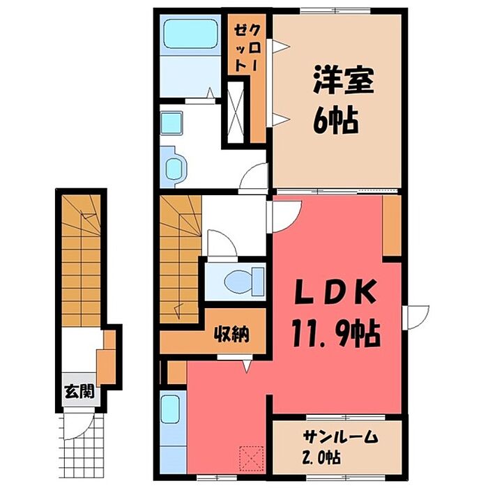 小山市大字喜沢 アパート 1LDK/2階
