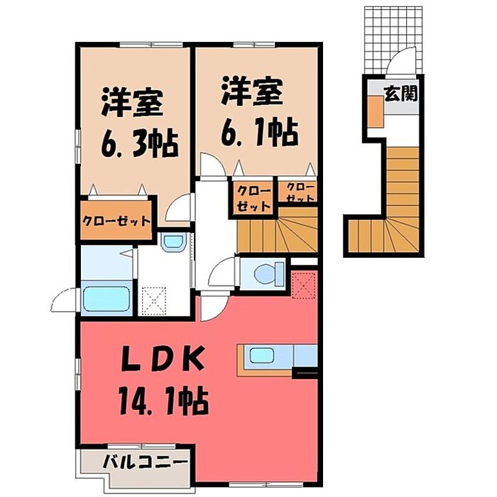 小山市西城南5丁目 アパート 2LDK/2階