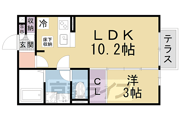 京都市山科区西野岸ノ下町 アパート 1LDK/1階