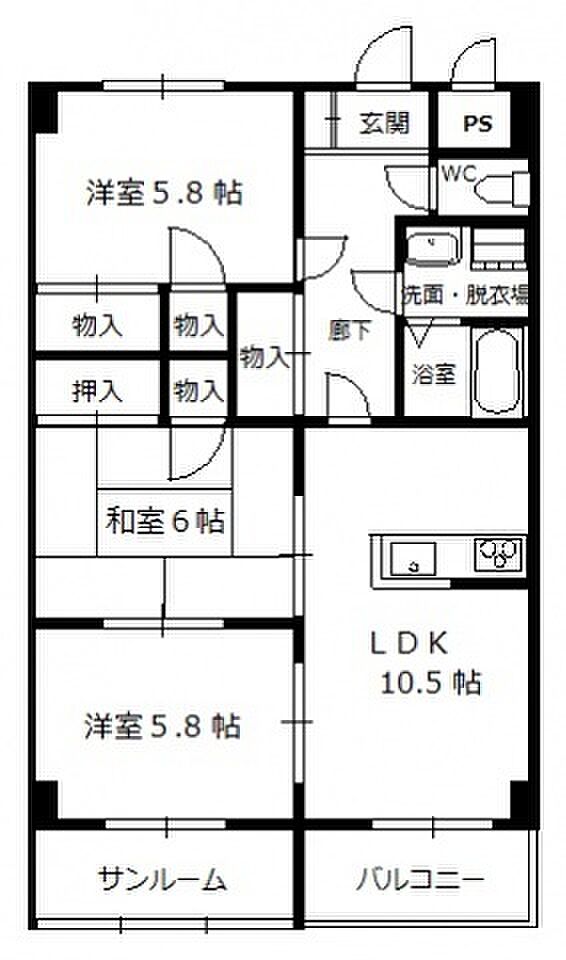 サンシャインハイム伊藤 302 3LDK/3階