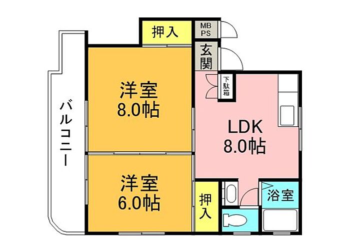 メゾン幸 402 2DK/4階