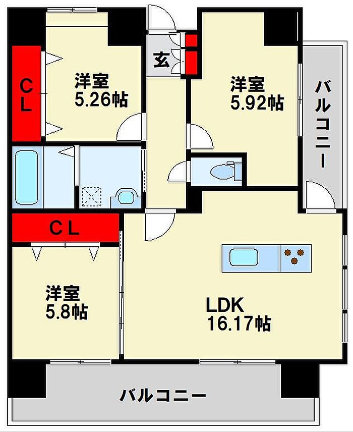 トーマスリビング北九州 築浅 ペット(小型犬)飼育可能 大容量のウォークインクローゼット付き