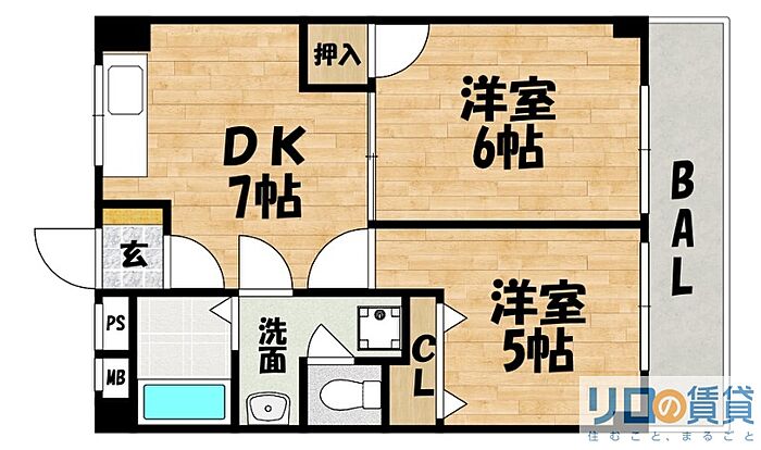 第6高光マンション 2DK/2階
