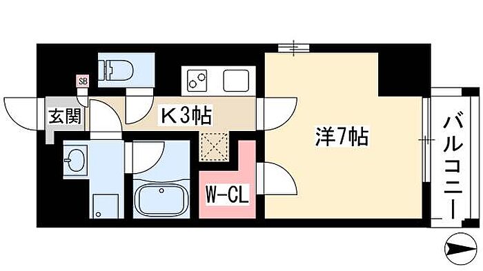 アイボリー 1K/6階