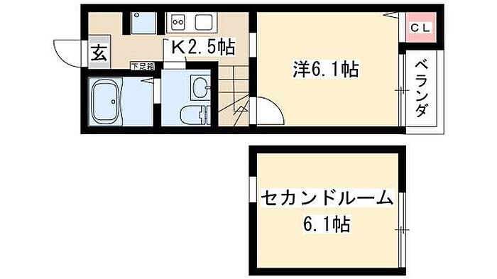 ヴェリテール本陣 1K/2階