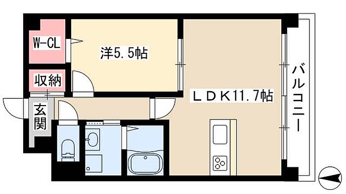 レクラン栄生 1LDK/7階
