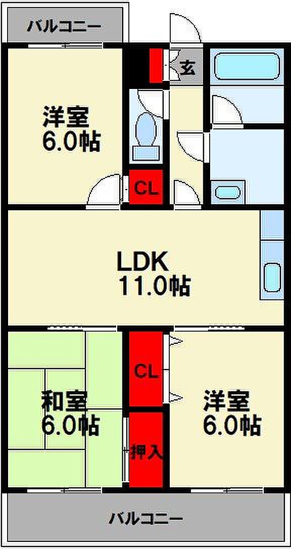 ヴィレッジ飯塚 3LDK/5階