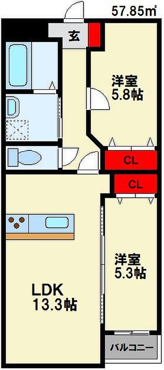 グランドゥール若菜 二番館 502 2LDK/5階