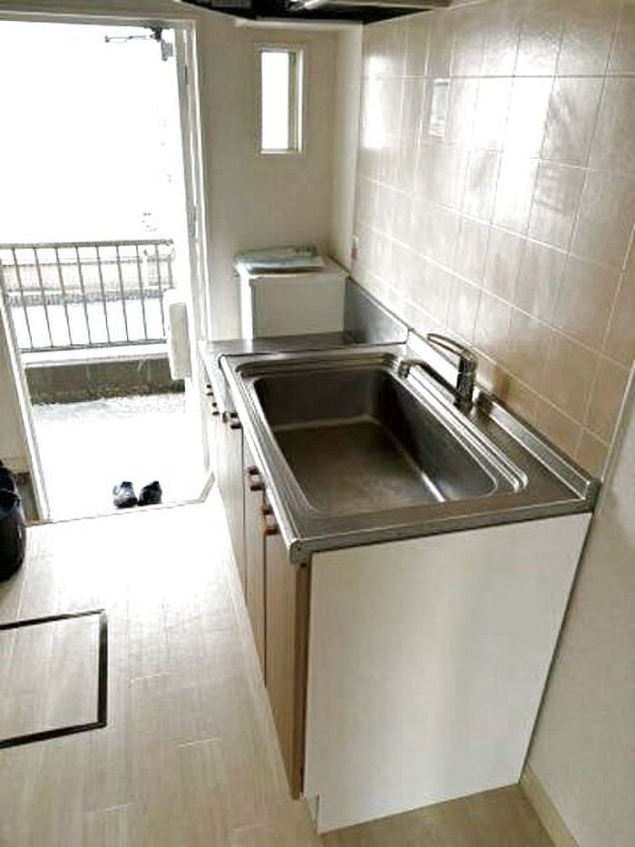 都市ガス給湯で経済的 2口ガスコンロ設置可キッチン、室内洗濯機置き場、エアコン完備