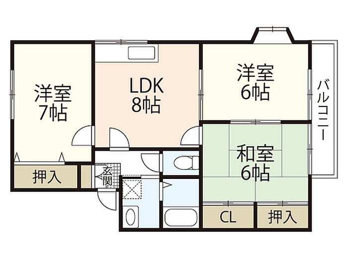 グランデュール横山B棟 3DK/2階