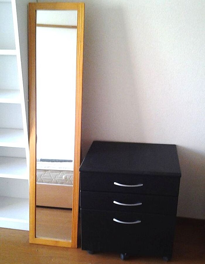 家具家電付なので、引っ越しが簡単です。家電:2ドア冷蔵庫、全自動洗濯機、電子レンジ 家具:机、いす、ベッドマット付き、多目的棚、チェスト、姿見、押入れ収納、食器棚、靴箱 。家具が要らない場合は月額1000円引き、家電が要らない場合は月額1000円引き、家具家電が要らない場合は月額2000円引きとなります。