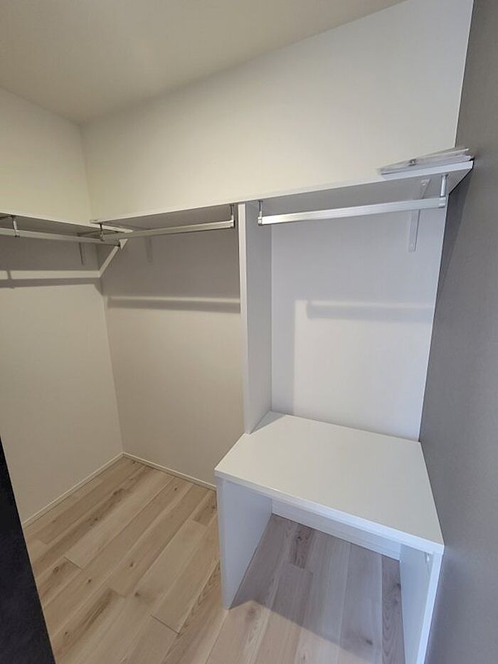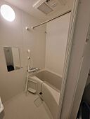テレビは壁かけタイプでお部屋もすっきり。雨の日も安心の浴室乾燥機、室内干しあり。洋室の奥には収納スペースもあり。木のぬくもりが感じられる1Kです。