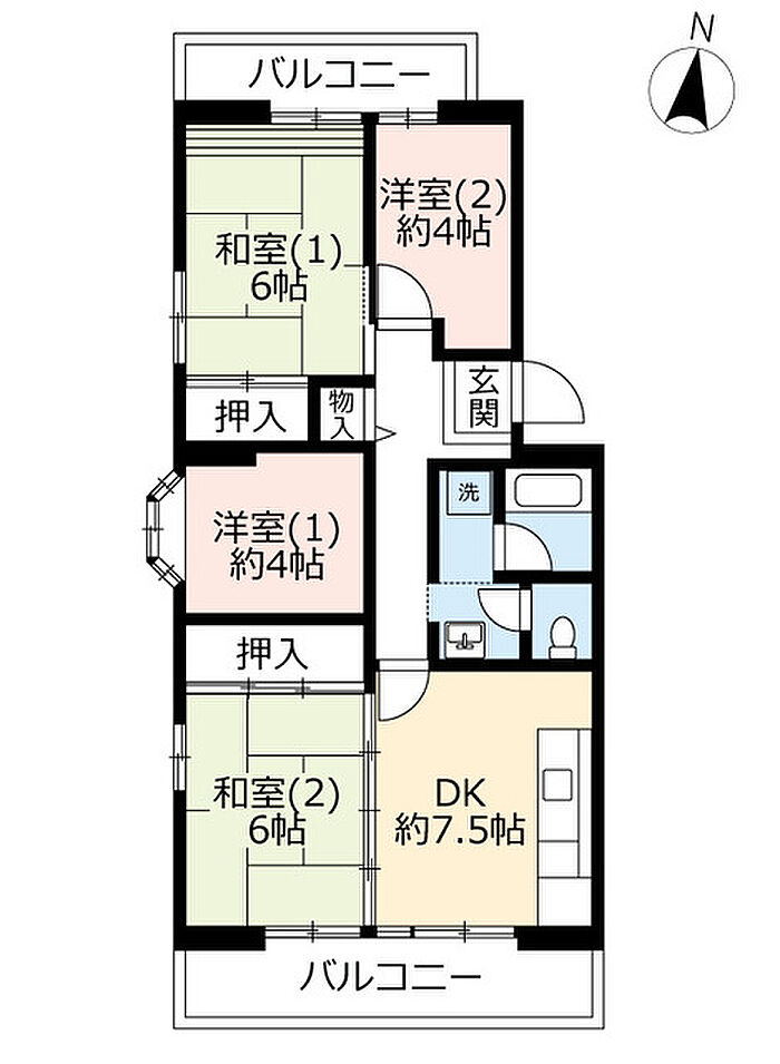 面積には、バルコニー面積2分の1を含みます。