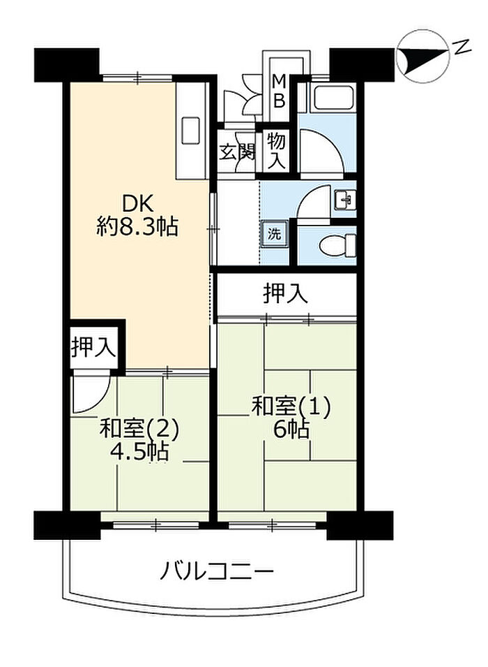 面積には、バルコニー面積2分の1を含みます。