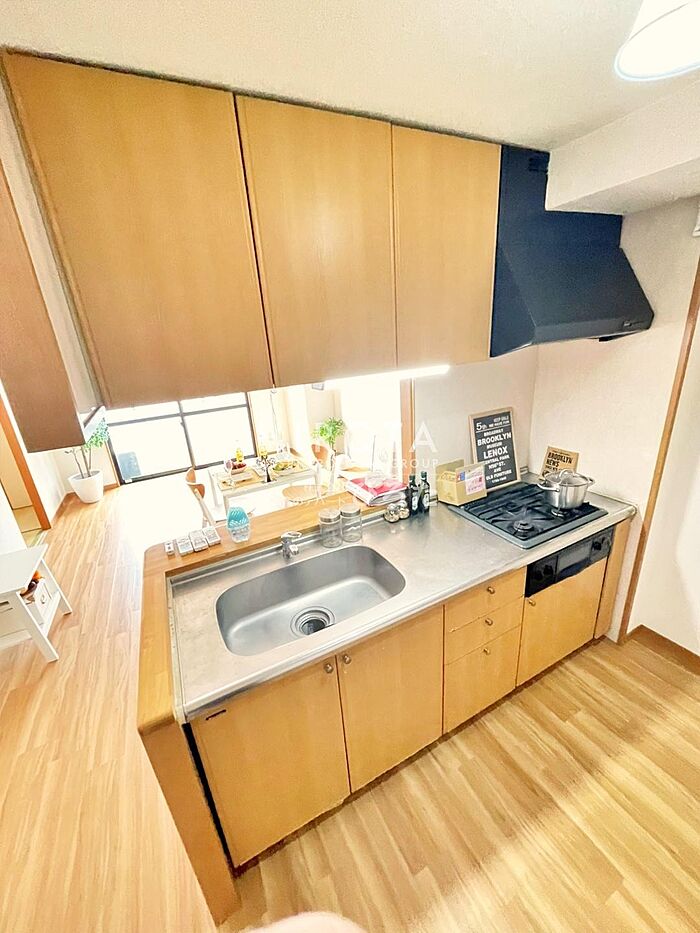 人気の下曽根エリアのファミリー向けマンションです。嬉しい都市ガス物件。ガスコンロ付きのシステムキッチンです。