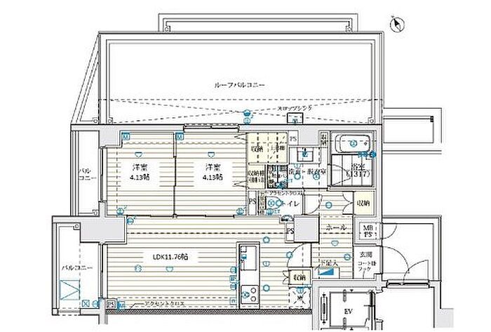 ペットと暮らせる2LDK 広々ルーフバルコニー付 宅配ボックス、浴室乾燥機等の設備充実