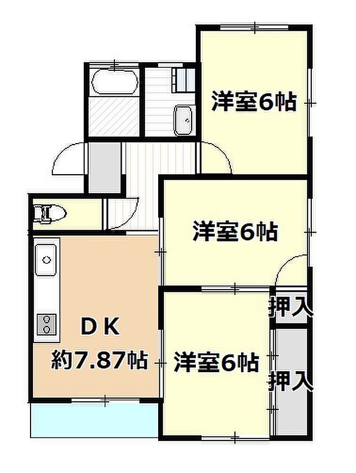 居室は全て6帖ある3DKのマンションタイプ