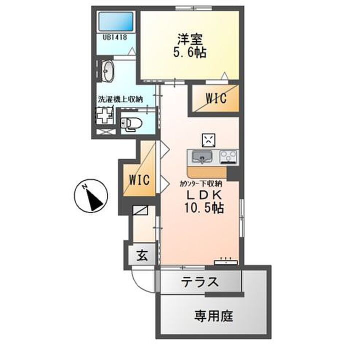 1階東角部屋です。専用庭があるのは106号室だけですよ。