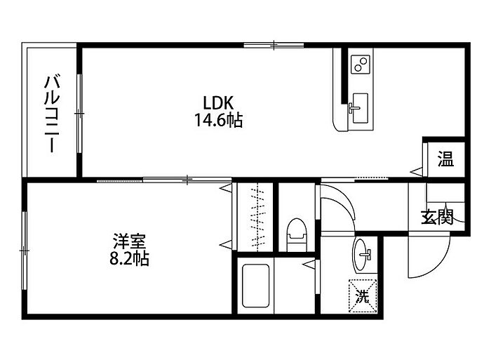 リビング、洋室広々としているのでカップルさんなどにもお勧めのお部屋になります!各お部屋にエアコンも付いているので購入しなくても大丈夫!1階ではありますが南向きで日当たり良好!