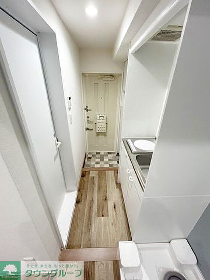 クッションフロア張替え・アクセントクロス・ダウンライト新設・バスルーム交換・給湯機交換・キッチン交換・TVモニタフォン新設・エアコン交換・下駄箱新設・室内洗濯機置き場新設