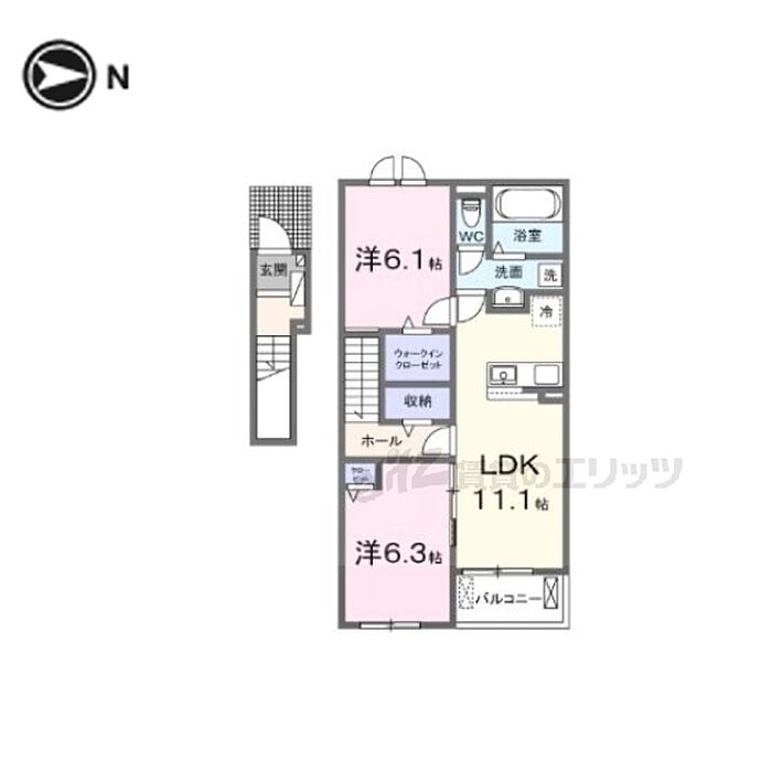 仰木の里東7丁目アパートB 202 2LDK/2階