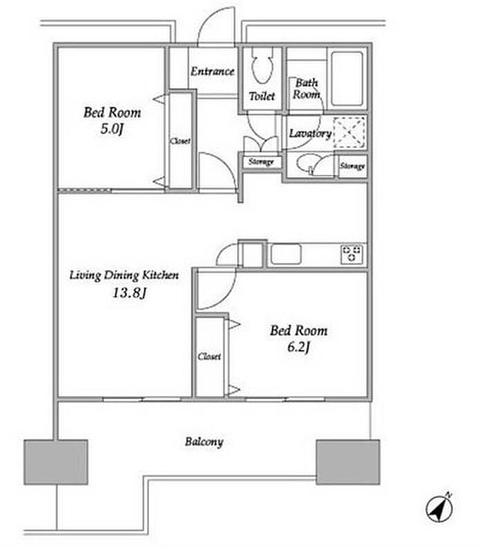 インターネット無料 南東向き2LDK 床暖房、ディスポーザー等ハイグレード設備充実