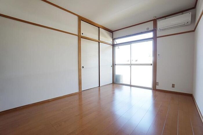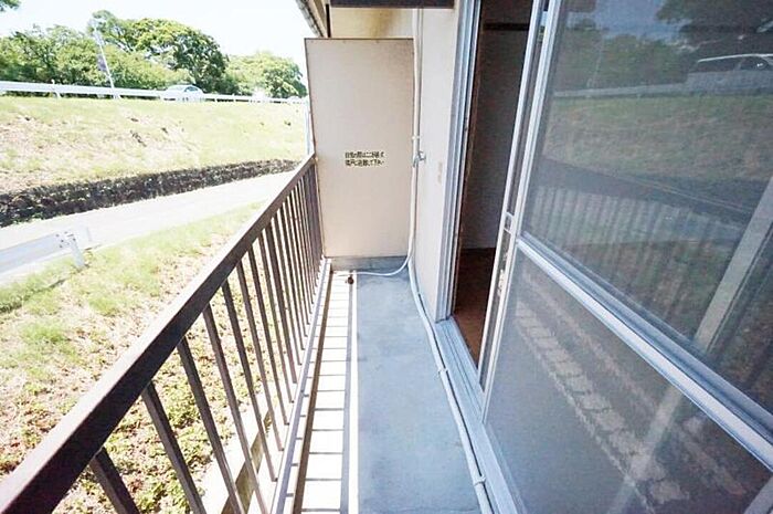 /エアコン付き、ガスコンロ付き、南ベランダ。石手川沿いのお手ごろ物件、ささやかに「野生の緑」が楽しめます。市内中心部まで自転車8分という好立地、一人暮らしの方にはオススメです。/[日本エイジェント管理物件 いつでも安心快適!]