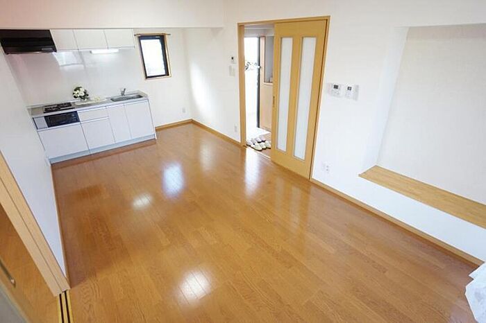 /リビングが広くてゆったり1LDKです。エレベーターがついています。エアコンも2基ついていて設備も充実しています。
